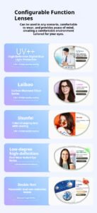 - Lenses: Compatible with UV++ blue light filtering, photochromic, low-prescription HD, and other functional lens options