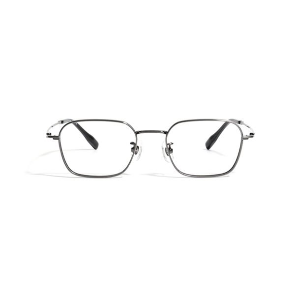 PAIIAZO J86832: Lightweight 8.5g pure titanium eyewear with a classic square ash gray design. Crafted for Asian facial contours, featuring flexible temple arms, non-slip nose pads, and precision hinges. Compatible with UV++ blue light filtering, photochromic, and low-prescription HD lenses—ideal for work, commute, and leisure, fitting heart-shaped, round, square, long, and oval face shapes.