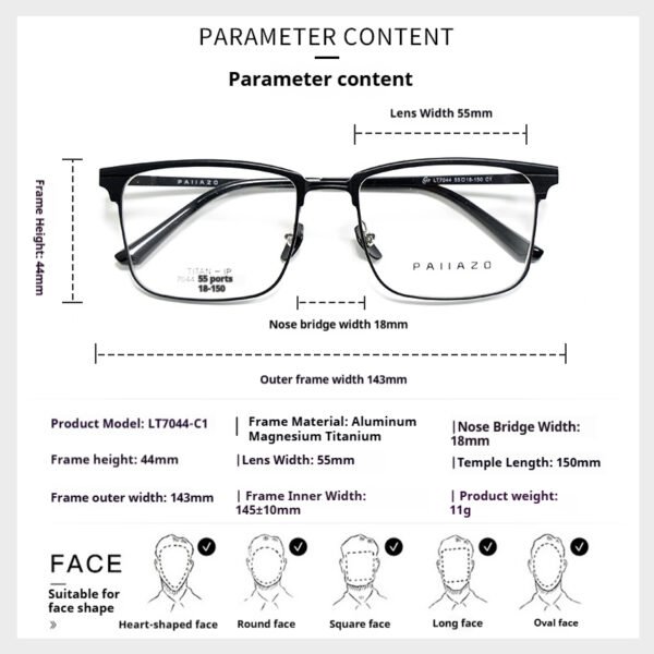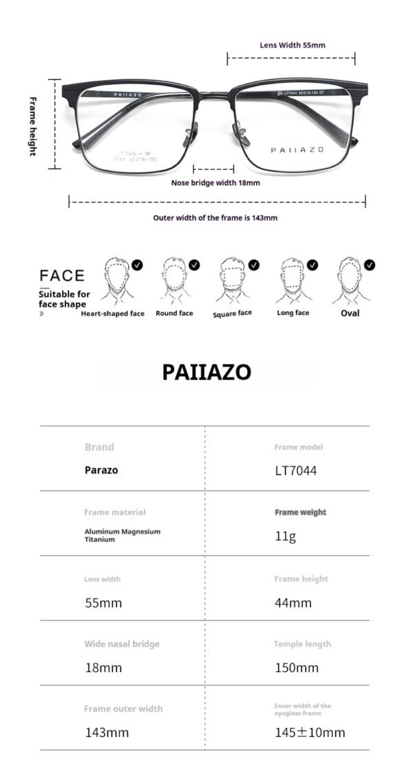 Parazo LT7044 eyewear redefines daily wear with exquisite craftsmanship and modern aesthetics. Designed for those who seek quality and comfort, it is the perfect companion for business, leisure, and digital life.